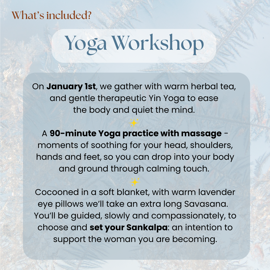 The Yoga workshop will include self-enquiry, breathwork practice, Yin and Restorative Yoga, guided relaxation and hands-on massage.